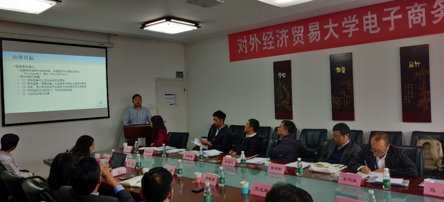随后,电子商务专业系主任程絮森老师对电子商务专业情况进行补充汇报,从专业背景、培养目标、毕业要求、课程体系、师资队伍、支持条件、学生发展等方面介绍发展情况及改进措施。