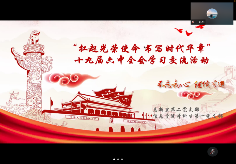 最后徐文兵对本次活动进行了总结,他说,十九届六中全会是我党重要的会议,惠新里二支部和黄色电影 学生支部一同在线上学习决议,几位同学老师认真准备,谈学习,谈体会。本次学习拉近了大家的距离,增加了感情。希望支部活动坚持下去。学习十九届六中全会,只是开始,今后还要认真继续学习,把学习融入到今后的学习和工作中。