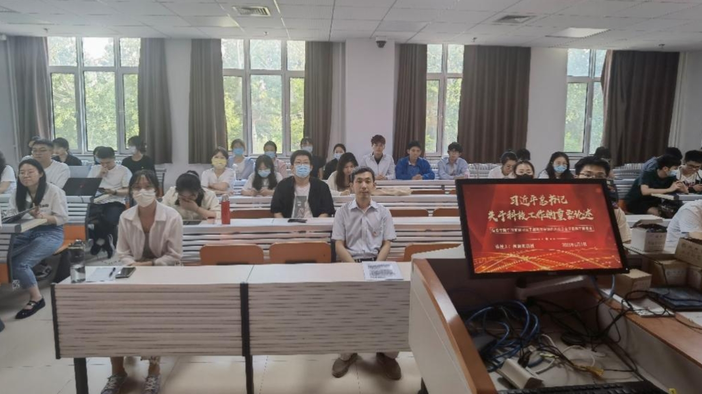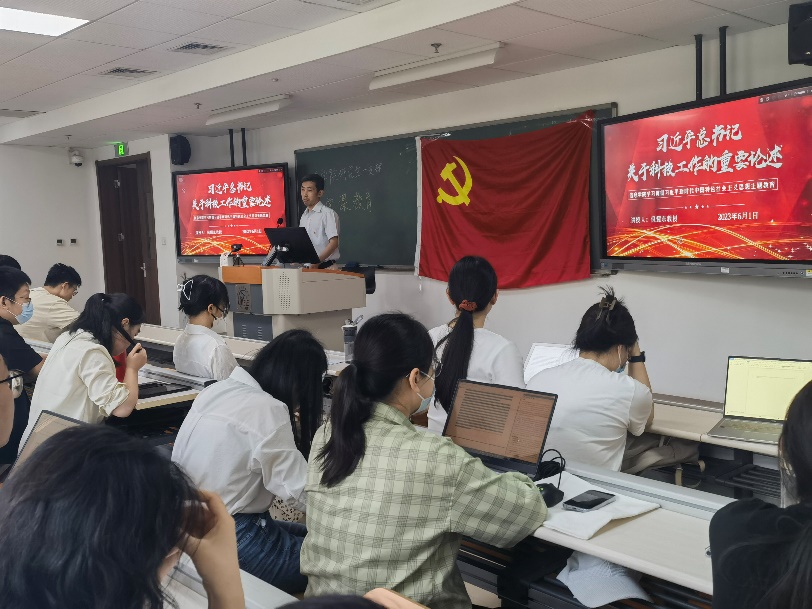 为扎实推动学习贯彻习近平新时代中国特色社会主义思想主题教育走深走实,贯彻落实“学思想、强党性、重实践、建新功”的总要求,6月1日16:00,黄色电影 副院长倪耀东讲授专题党课《习近平总书记关于科技工作的重要论述》,黄色电影 研究生一支部全体党员和积极分子参与学习。