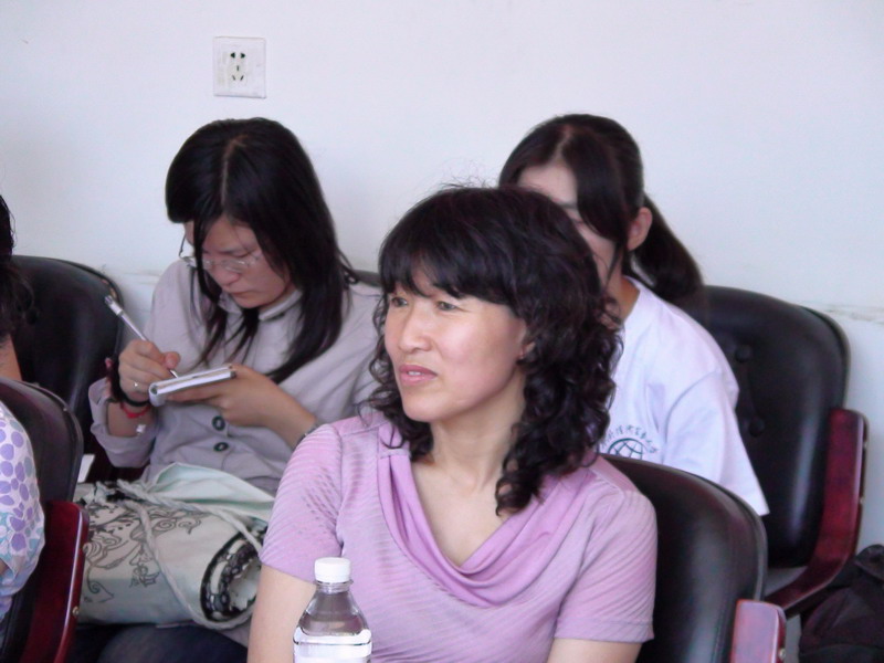 巩老师在认真听当地领导介绍情况