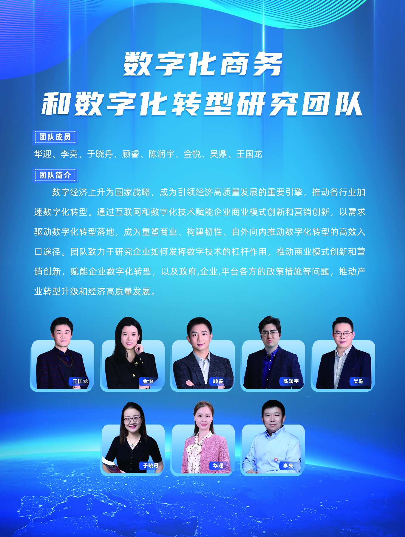 数字经济上升为国家战略,成为引领经济高质量发展的重要引擎,推动各行业加速数字化转型。通过互联网和数字化技术赋能企业商业模式创新和营销创新,以需求驱动数字化转型落地,成为重塑商业、构建韧性、自外向内推动数字化转型的高效入口途径。团队致力于研究企业如何发挥数字技术的杠杆作用,推动商业模式创新和营销创新,赋能企业数字化转型,以及政府,企业,平台各方的政策措施等问题,推动产业转型升级和经济高质量发展。