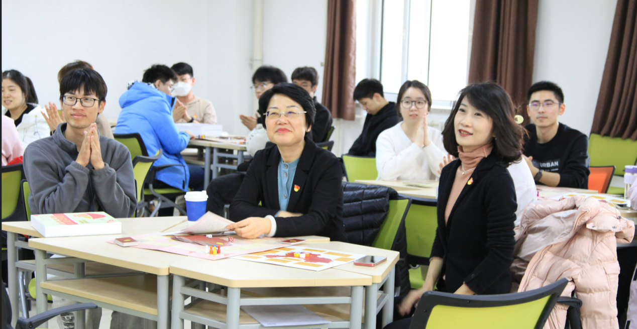 文君副校长、梁伟书记也和同学们一起参与桌游活动,文君副校长指出此次活动创新了党支部活动的新形式,结合当下年轻人喜闻乐见的桌游方式,将党史知识、重大事件和桌游活动打卡点完美结合,以趣味性棋牌策略桌游为载体,以党史知识教育为核心,将党史学习融入游戏过程,兼顾趣味性和科学性,这种寓教于乐的方式,让党史知识更加生动有趣,在活动的同时也在思考和学习。