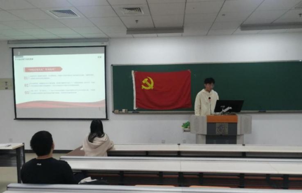 最后,黄潇洋同学以“中国式现代化”为题展示了他们小组的学习成果。他讲到了中国式现代化是基于西方的现代化,在吸收了他们的优点和长处的基础上发展出的独属于中国、适用于中国的现代化,是和平、和谐、人民共享的现代化。中国式现代化是解决社会主要矛盾的基本途径,是实现中华民族伟大复兴的必由之路,更是应对复杂国际环境的必然要求。