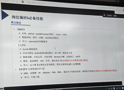 2024届校友、现任职于京东的王婧妍,围绕核心工作内容、岗位必备技能、求职规划制定及实用经验技巧四大维度展开分享。她建议同学们结合学业规划时间节点,逐步积累实习与项目经验,明确职业发展方向,不断提升专业技能;此外还特别强调了简历制作的核心在于精准匹配岗位需求;同时解答了“首份算法实习获取、管科专业技能适配性”等问题,为相关专业学子及意向从业者提供了清晰的求职思路与实践参考。