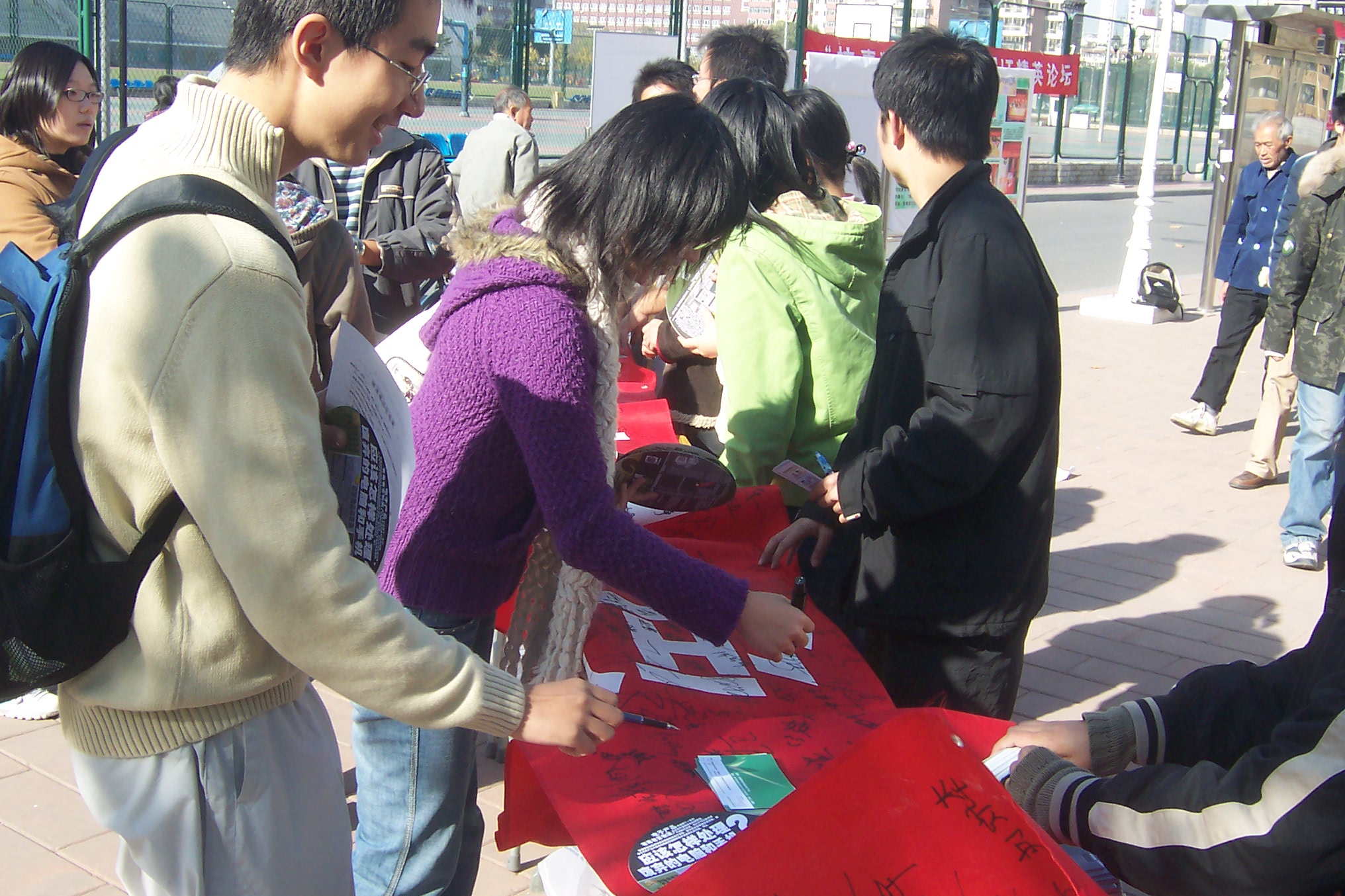学生会和“绿色和平”组织人员对过往的同学们进行宣传和讲解。同学们对绿色IT有了初步的了解,签名表示支持绿色IT的理念,并愿意参加当晚举行的IT经济论坛,进一步了解相关知识。有的同学是第一次听说这个理念,以前也未留意过此方面的信息,他们对绿色IT表现出了很大的热情;有的同学对绿色IT之前已有一定的了解,并愿意从自我做起,通过实际行动支持绿色IT活动。