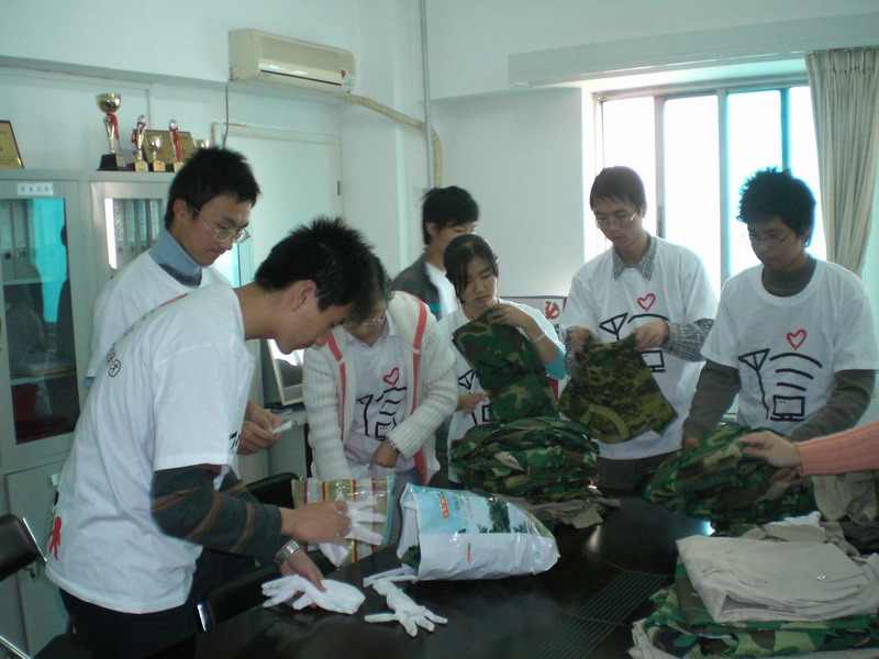 10月底的北京已进入初冬,虽然天气寒冷,但是黄色电影 青年志愿者服务团的同学正热火朝天地忙碌着一件充满爱心和温暖的大事。黄色电影 青年志愿者服务团联合“国际大学生爱心联盟”(由600多个记者、300多个媒体发起的慈善机构)、中国国际慈善基金会,共同发起了捐献军训衣服、书本等物资的爱心活动。多日来志愿者服务团爱心小组成员们分工合作,积极动员广大同学捐物献爱心,小组共收集到同学们的军训服装、T恤、外套、解放鞋、理论教材等物品达400余件。这些物资将经由中国国际慈善基金会被送往河南的华东技工学校。