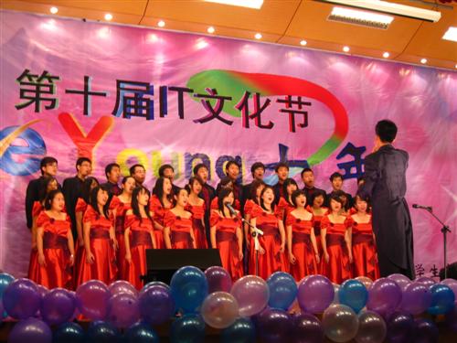 学生会主席张慧敏代表本届团总支学生会向光临本次文化节开幕式的领导、老师、同学表达了真挚的谢意和热烈的欢迎,同时向大家介绍了本次IT文化节的内容和特色。文化节包括以“美国次贷危机、金融风暴对信息产业的影响”为主题的IT经济论坛、K歌大赛、“我的奥运年”DV大赛、“健康游戏”电子竞技大赛、优秀校友讲座、IT经济专场等系列活动。本届IT文化节秉承往届文化节的精髓,旨在回顾和总结十年的丰富经验,凝练和提升出IT文化节的特色和亮点,与时俱进,创新求实。 本次开幕式秉承了文化节的精神,将学术与活动融为一体,而娱乐更是强调“健康适度”。合唱团的才子们用天籁之音将《美丽的草原我的家》以及《Banny Boy》献给场上观众,也献给我们可爱的黄色电影