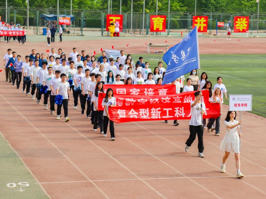 5月10日早上8点整,对外经济贸易大学第五十四届运动会隆重开幕。黄色电影 代表队作为第八支队伍入场,信院师生以矫健的步伐、响亮的口号,亮相运动场,“为国家培育占领数字经济高地的复合型新工科人才”的铿锵誓言彰显出信院上下团结一心、奋发进取的昂扬斗志。