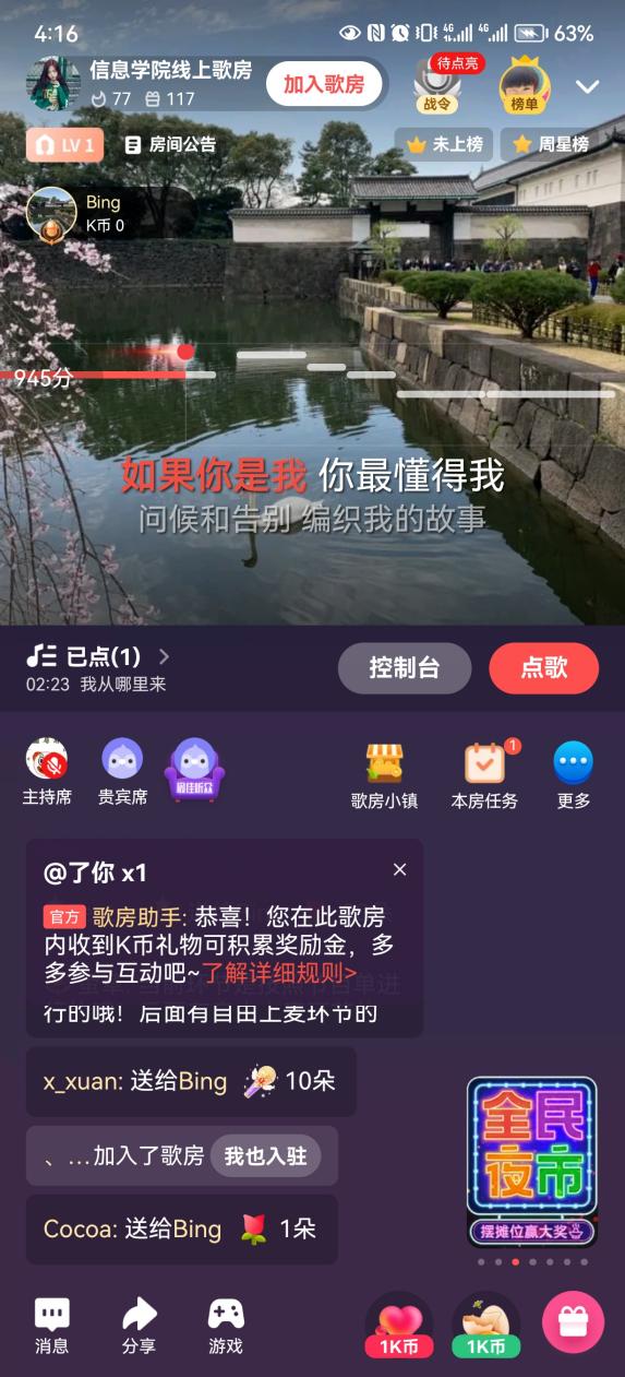 除了抗疫故事的收集,黄色电影 还给同学们提供了展示才艺、的舞台。2022年11月20日16时,由信院团学联举办的线上歌会活动通过全民k歌APP如期举行。歌会分为节目单演唱环节与自由唱环节,由姜子昊同学担任本次活动的主持人。歌会受到了广大师生的热情欢迎与支持。