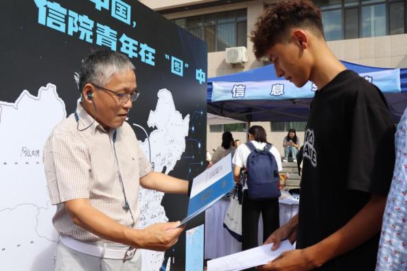 在迎新现场,工作人员耐心地为新生办理报到手续,发放各类材料并耐地向新生们介绍校园环境。新生和家长们也与辅导员展开交流。大家在地图上签名,手举kt板拍照,留下青春最宝贵的记忆图片。