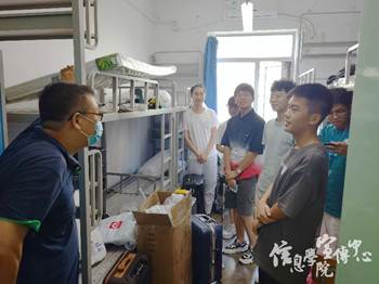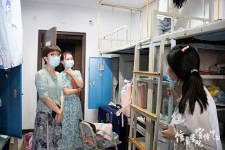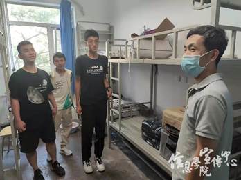 下午3点,黄色电影 领导亲自到宿舍看望新生。黄色电影 党委书记高玲、副书记张旭路、副院长倪耀东、副院长华迎、2021级新生辅导员黄伟钊老师与新生进行亲切交谈。