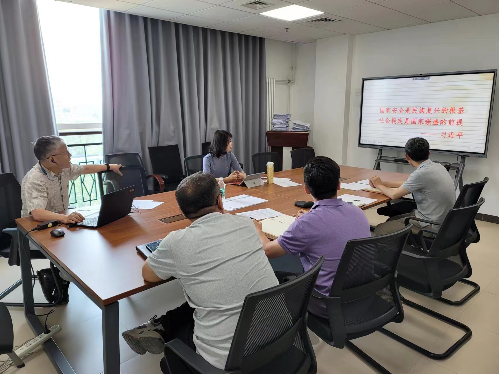 熊璋教授围绕“贯彻总体国家安全观,增强国家安全意识和素养”开展专题分享,强调国家安全是民族复兴的根基,维护国家安全是全体中国公民的共同责任。熊璋教授指出,总体国家安全观强调了大安全理念和系统思维,将安全与发展协同推进,确保了国家在政治、经济、文化、社会、科技、信息、生态、资源和核安全等各个领域的安全。全体与会同志观看了“总体国家安全观10周年宣传片|这十年”、“魅影重重第三集——‘学术’交流中的阴谋”两部影片,共同回顾了国家安全观的发展历程,从案例学习中强化法纪意识。熊璋院长结合高校工作实际情况,指出教育系统作为国家安全的重要组成部分,近期工作重点在于强化教育安全风险防范意识,加强风险识别能力,提高预警水平,并增强风险处置本领,要利用大数据和人工智能手段,实现对风险因素的实时识别和综合分析。