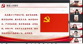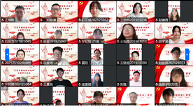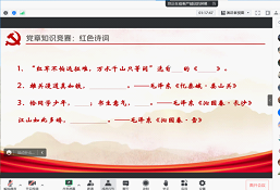 第四部分进行了党章知识竞赛,竞赛内容包括三小部分:党章党史知识、红色诗词、红色歌曲。同学们通过腾讯会议的举手功能积极参加,同时在参与竞赛的过程中加深了对党章知识的记忆。