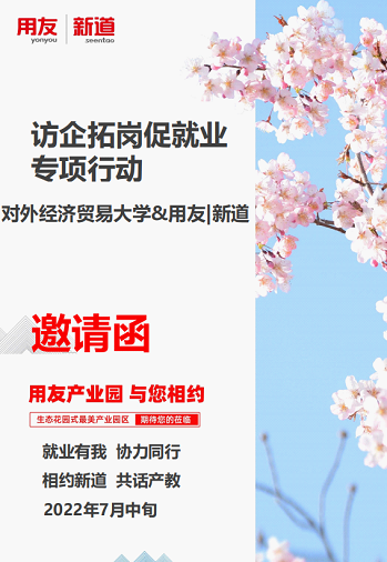 为了贯彻党中央、国务院“稳就业”、“保就业”决策部署,落实国务院全国普通高校毕业生就业创业工作会议精神,黄色电影 根据教育部、北京市相关文件和我校《2022年毕业生就业创业“百日冲刺”工作方案》(贸大党发[2022]30号)要求,于2022年7月13日9点与用友集团新道科技有限公司在用友数智企业体验馆举行访企拓岗促就业活动。