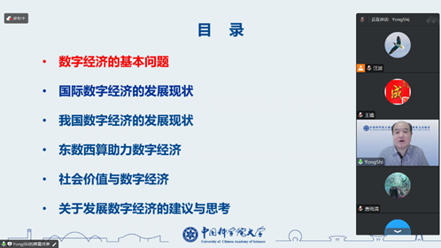 在本次关于数字经济的发展与未来的讲座中,石勇教授首先描述了数字经济的基本问题。然后,他着重讨论国际数字经济与我国数字经济的发展现状,并给大家介绍了东数西算对助力我国数字经济发展的重要意义。最后,石教授概要探讨发展数字经济的社会价值,同时给出了自己的建议与思考。