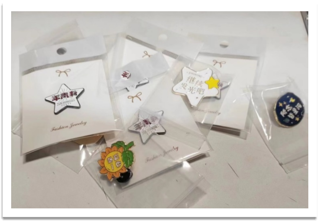 在规定时间内,两组同学均找齐了10个打卡点,并准时到达展览馆门口集合,随后班委为胜利小组的每位组员都送出了奖励,大家随机抽取了一枚小徽章。