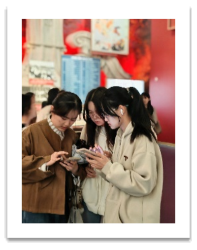 随后,开展馆内打卡趣味活动。班委介绍规则后,将同学们分为两个组,分别找寻馆内的打卡点,每组10个打卡点,率先完成的小组成员将获得励志徽章。