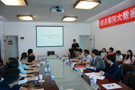 各兄弟院校相关专业的学者嘉宾纷纷就各自在大数据领域的教学内容和成果进行了详实的介绍和解说。袁晓如教授主要谈到认知角度的大数据分析,重点在通过建立数据可视化模型辅助学生对大数据的认知情况,提高对数据的敏感性,认为专业研究重点在人的感知构建过程,需要培养学生将数学理论与认知应用相结合的能力;颜志军副院长认为目前大数据的分析课程涉及到多个知识体系,在针对本科学生的培养方面,应该重视基本方法介绍和工具类课程设置,教学目标应放在拓展学生分析问题的思维和提高学生解决问题的能力方面;吴俊杰教授详细介绍了北京航空航天大学目前正在实施的针对大数据在资讯、舆情方面的应用项目以及成果,展示了大数据广阔的应用范围和研究前景,他认为经管背景的大数据专业应当把对学生建模能力的培养和训练放在第一位,学校提供的学习平台重要性为第二位,对学生的大数据思维训练放在第三位,在专业课程设置方面应包括基础理论类课程、基础技术类课程和大数据方向涉及到的综合技术类课程,另外教师队伍应多样化,利于学生接触更多学科,除此之外,还应当重视学生课后实践,教学应用牵引以及跟进国际视野。