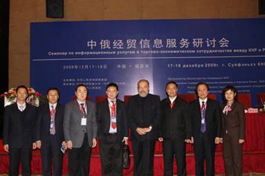 为加强中俄经贸合作信息服务,总结交流近年来网络信息平台在推动双边经贸合作中发挥的作用,由商务部主办,对外经贸大学(中俄经贸合作网)和绥芬河市人民政府共同承办的“中俄经贸信息服务研讨会”于2009年12月17-18日在黑龙江省绥芬河市举行。本次会议是中俄两国经贸信息服务领域的首次交流活动,与会代表围绕中俄经贸信息平台建设、网络信息与企业需求对接、电子商务等议题进行了研讨。
