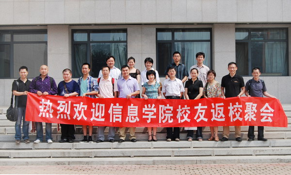 校友们在诚信楼前合影