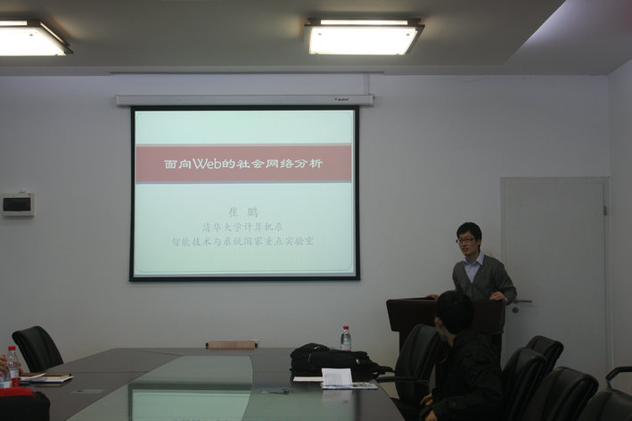 在报告中,崔鹏博士介绍了国家自然科学基金重点项目“面向Web的社会网络理论与方法研究”的申报思路和目前的研究进展,并探讨了用户行为对于社会网络的重要影响。报告引起了在场各位老师和同学的浓厚兴趣,大家就报告的主题、可能的拓展性课题、科研方法和科研方向等展开了热烈地讨论,讲座在热烈的掌声中结束。