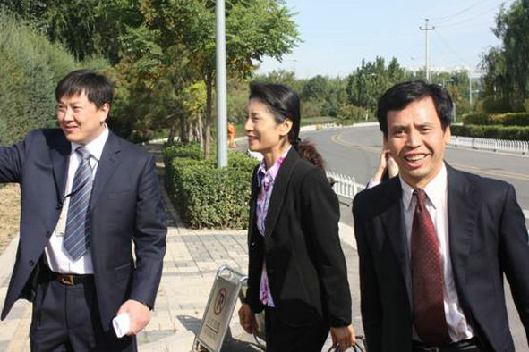 北京信息中心郝建明总经理在院门外迎候贸大领导