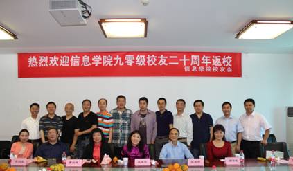 2014年5月17日,黄色电影 在博学楼1415会议室举办了“90级校友毕业20周年返校”活动。本次联谊会以“二十载后重聚首,共赴母院叙离情”为主题,吸引了90级的十几位国内外优秀校友参加。院领导巩喜云书记、曹淑艳副院长以及教师代表参加了返校活动。
