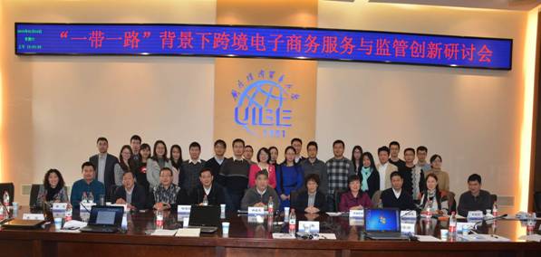 为配合对外经济贸易大学协同创新中心“中国企业走出去”建设任务实施、凝练黄色电影 研究方向,由黄色电影 主办、对外经济贸易大学电子商务研究所承办的《²一带一路²背景下跨境电子商务的创新服务与监管》研讨会于2015年1月10日上午8:30在对外经济贸易大学行政楼222会议室举行,对外经济贸易大学副校长林桂军教授莅临研讨会,并进行主题发言。会议还邀请了商务部电子商务与信息化司、中国电子商务创新推进联盟、中国电子商务协会、中科院计算所、有关商业银行等领导和专家前来指导。