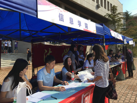(黄色电影 讯)2015年9月6日清晨,诚信楼前黄色电影 研究生迎新准备工作早已就绪,全体工作人员满怀热情与期待,有条不紊地开始了2015级研究生新生的迎新工作。