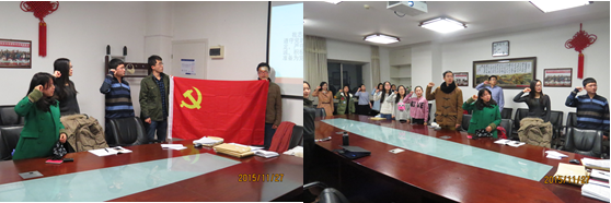 预备党员王继贤、段琼妍、王丹分别宣读他们的转正申请书和全年总结,预备党员介绍人和其他党员同学们分别对他们三人在转正期间的表现做出评价和建议,最后,由全体在场的正式党员的举手表决,三人均全票通过,顺利转为中共正式党员。最后,全体党员同学在组织委员张峻瑞的带领下,面对党旗并庄严宣读入党誓词。三位转正的党员同学都表示虽然转正大会的时间不长,但为了成为一名合格先进的中共正式党员所付出的努力绝非一朝一夕。