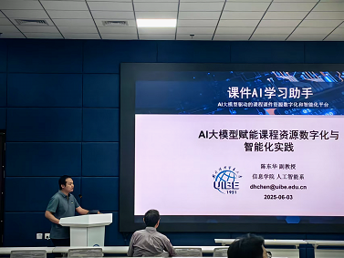 第八期由陈东华老师主讲,以“AI大模型赋能课程资源数字化转型”为题,聚焦传统课件与教学内容如何通过AI技术实现结构化与自适应重构。陈老师介绍了其团队研发的“课件AI学习助手”项目,展示了AI大模型在课前备课、课中内容扩展、课后自主学习等环节的支撑能力。通过教学案例展示与模型问答实操,陈老师提出了大模型赋能课程资源建设的新思路,为解决教学资源内容单一、交互性差的问题提供了有力方案。