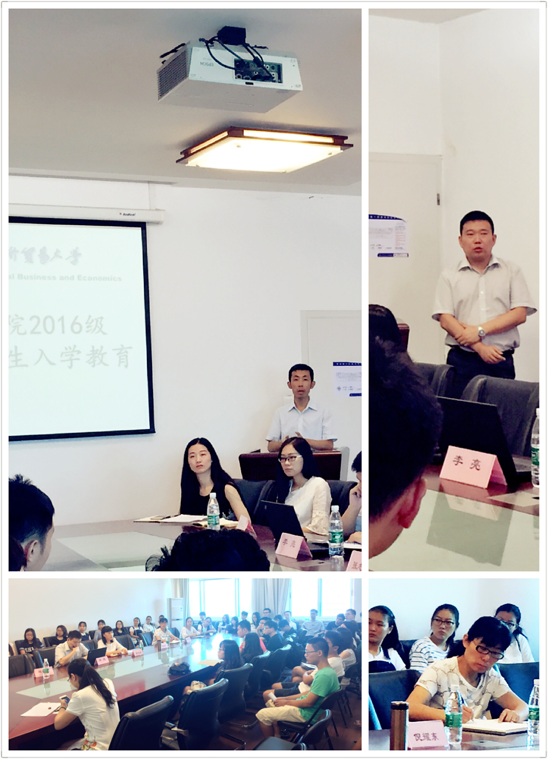 此外,教务姜华老师提醒新生认真阅读研究生手册、培养方案及各项规章制度,自觉养成关注研究生院以及信息平台各项通知的好习惯。随后,由2015级产业经济学专业黄晓凤、金融学专业陈伊韵两位学姐分别为新生们介绍了相关专业的选课流程并分享了她们在选课以及学业方面的宝贵经验。