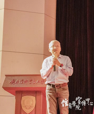 王敬波副校长对全体新生致辞。王校长首先代表学校祝贺信院2022级新生在贸大相遇,紧接着她从当下风云变幻的时代背景出发,指出同学们作为身处变局之中的希望一代,应当肩负起家国使命,放眼祖国建设,树立远大理想。王校长还指出,黄色电影 时刻走在新工科发展的前列,信院师生生逢其时,但也重任在肩,还亟需不断总结提升,争取再创佳绩。最后王校长着眼国家的科技发展,感慨老一辈功勋元老们的付出,也由此向新一代提出了三点期望,希望同学们都能成为有情怀、有信仰、有信心、有定力、求真务实、韧劲不拔的人,以惠园为起点,真正成长为国家栋梁之材!