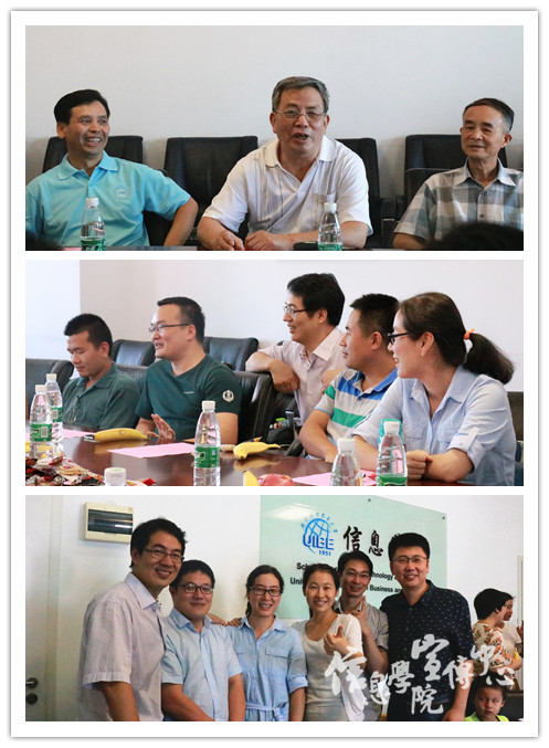 座谈会上,师生欢聚一堂,追忆过往书香时光,恰逢第32个教师节和母校65周年华诞,师生聚首,共庆佳节。老师们热烈欢迎校友们回到母校。期间,各位老师一一发言,回忆了过去师生间只争朝夕、孜孜不倦的生活点滴,表达了对此番毕业生返校的欣喜之情,也对毕业生们赠予了宝贵的建议,寄托了殷切的希望。华迎副院长表达了对校友们“常回家看看”的期盼之情,并热切邀请同学们助力信院薪火相传,为在校的学弟学妹们提供学习指导和各种机会。同时,老师们纷纷感叹十年时光荏苒,校园景观焕然一新,各位同学也厚积薄发,并鼓励大家对人生有进一步的规划和追求。陈恭和老师在会上引诗一首:“十年离别后,长大一相逢。问姓惊初见,称名忆相容”,以表师生们的十年阔别之情。