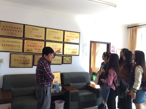 2015级研究生党支部一行到达南小庄村村委会,通过与村委会副主任于天禄和南小庄村村官的交谈,了解关于村委会及村支部现行政务工作的宣传方式以及宣传设施方面的基本情况。