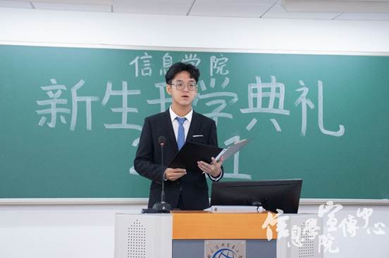 随后教师代表屈启兴、2021级新生班主任代表陈振娇、优秀在校生代表房浩德、本科新生代表谢冰心和研究生新生代表付瑞鑫依次发言。屈老师分享了自己对于大学生活的三点感悟:系统而主动地学习、学会与他人和睦相处、乐观生活;陈老师则站在班主任的角度给予同学们温暖与关怀。房浩德同学分享了自己对于大学生活的经验与感悟,并提出了学会平衡学习与学生组织的工作、勇于尝试、享受孤独等建议;谢冰心同学与付瑞鑫同学则展现了自己的责任与担当。