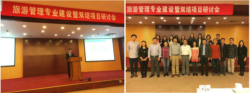 四位专业课教师:程絮森、李亮、黄浩和屈启兴老师分别对信息技术旅游创新、IT战略与企业竞争优势、旅游大数据分析和旅游目的地管理四门专业核心课程,从课程培养目标、培养方式、教学内容等方面为大家进行了精彩的展示。此外,2015级双培生学生代表宋金龙同学也对双培班过去一年参加的社会调研与实践活动进行了汇报总结。之后全体老师对于专业建设和双培项目核心问题进行了分组讨论,并进行总结交流。