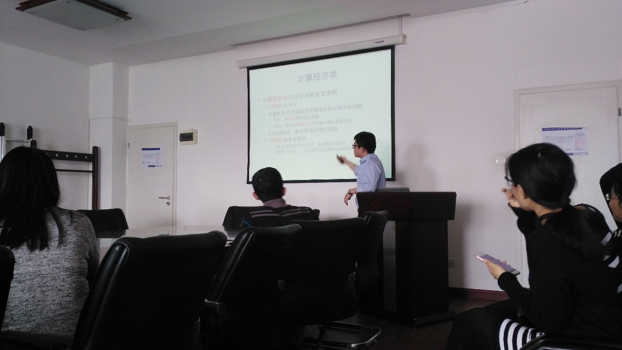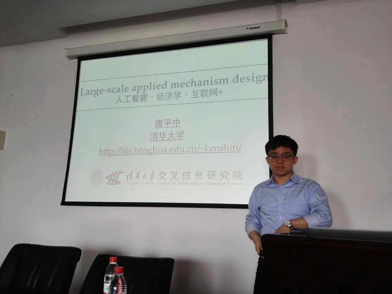 邀请,在博学楼1416进行了一场精彩的学术报告,报告主题为“机制设计的大规模应用”,参加讲座的师生共计三十余人。