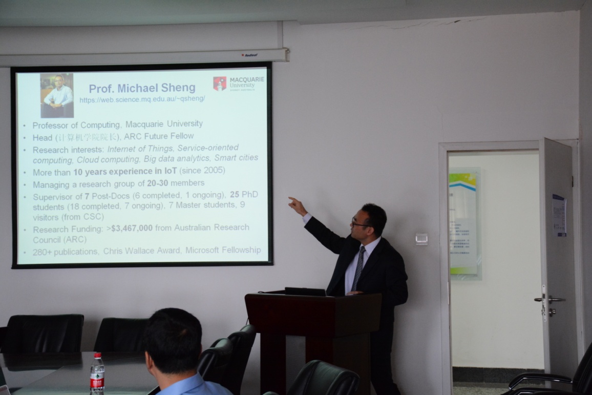 结束了国际合作方面的探讨交流,Michael Sheng教授为我院教师和研究生分享了一场主题为“Discovering Correlations in the Internet of Things”的学术讲座,让大家对互联网背景下国际前沿的最新研究有了更深的了解。