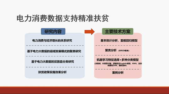 接下来,郭老师开始介绍她的团队近期开展的基于电力大数据的全国县域发展水平分析实践研究。她指出,电力消费数据对经济的表征作用已被广泛认可,因此研究电力数据与地区贫困的之间的关系是具有可行性和合理性的。利用基于电力大数据进行县域发展模式聚类、贫困县分类研究,能够及时有效地通过用电数据挖掘潜在的县域经济的发展情况,通过用电结构的变化挖掘出不同县产业结构的调整与趋势,从而可在一定程度上提前于经济数据的分布发现县域发展可能存在的问题,同时也发掘出了部分即将脱贫摘帽的县城,发掘出了不同的脱贫路径,也可为处在同一类别的贫困县脱贫提供发展方向。