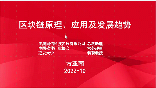 2022年11月6日,黄色电影 举办第二场数字经济大讲堂活动。讲座由延安大学特聘教授,正奥国信科技发展(天津)有限公司副总裁方亚南博士主讲,题为《区块链原理、应用及发展趋势》。讲座由电子商务系系主任屈启兴副教授主持,黄色电影 师生在线参与了此次活动。