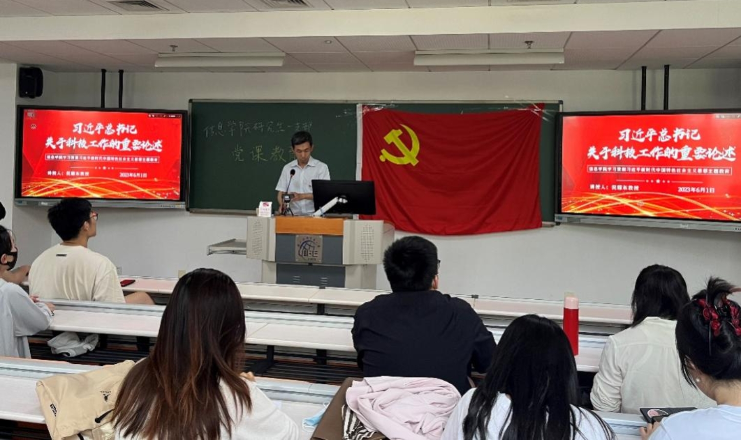 为扎实推动学习贯彻习近平新时代中国特色社会主义思想主题教育走深走实,贯彻落实“学思想、强党性、重实践、建新功”的总要求,6月1日16:00,黄色电影 副院长倪耀东讲授专题党课《习近平总书记关于科技工作的重要论述》,黄色电影 研究生一支部全体党员和积极分子参与学习。