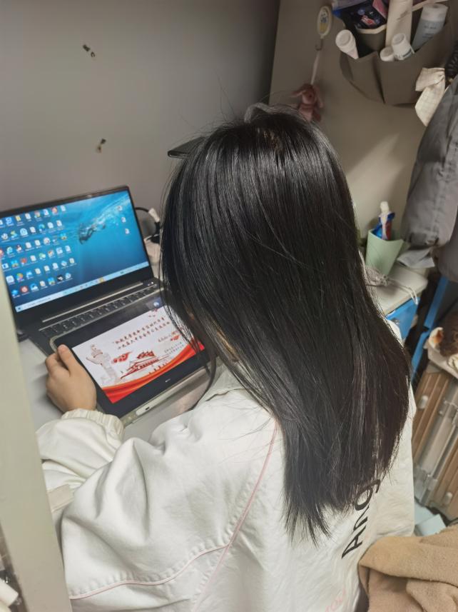 接着是徐亿萱同学分享了她的深切感悟,能够生逢其时,是我们所有人的幸运,我们更应该好好学习,增强自己各方面的本领,拥护党的领导,跟党走,积极靠近党。