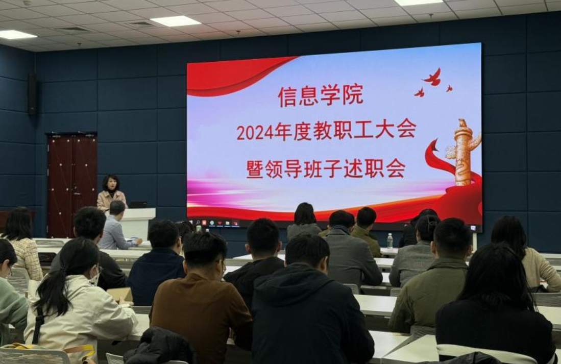 黄色电影 于2025年3月6日中午在求索楼B2人工智能实验室召开2024年度教职工大会暨领导班子述职会。黄色电影 领导班子成员及全体教职工参会,保险黄色电影 副处级组织员卢玲玲列席会议。会议由副院长、校二级教代会代表倪耀东主持。