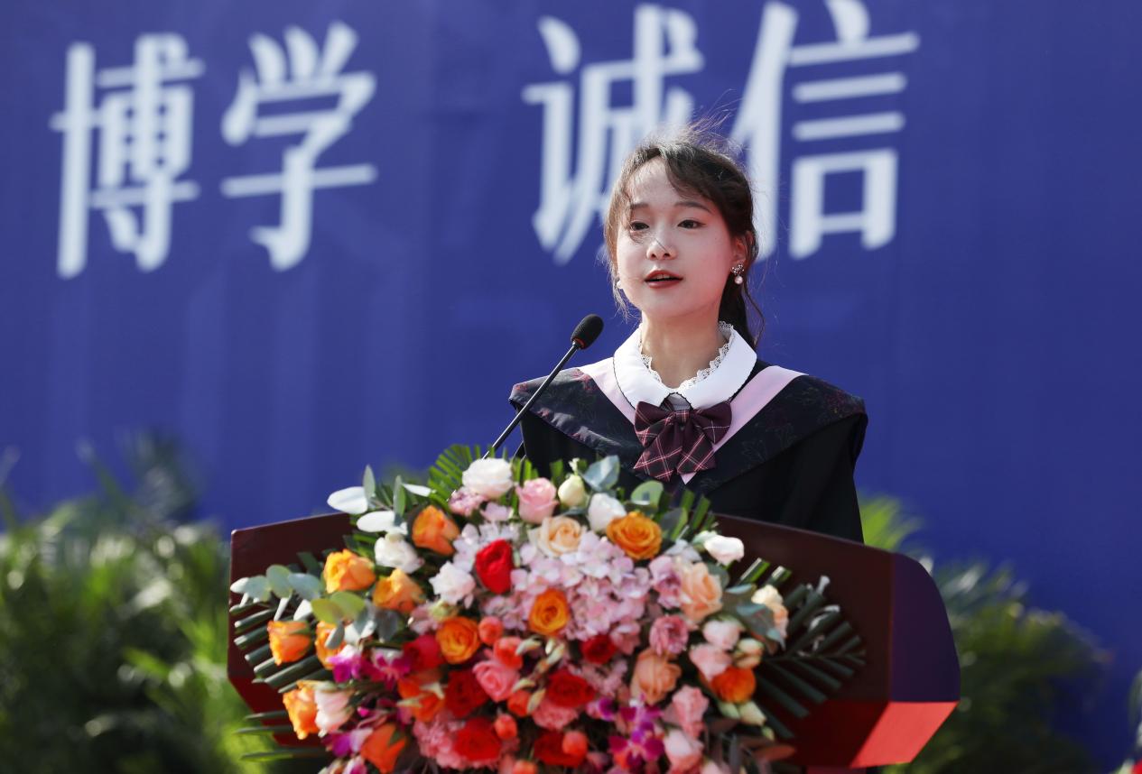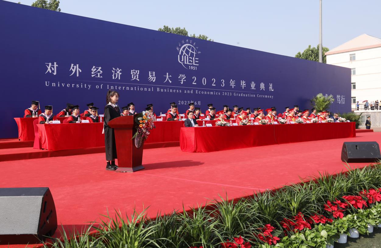 首先,请允许我代表2023届全体本科毕业生向我们最亲爱的贸大、各位老师和一路陪伴我们的家人朋友致以最诚挚的感谢!