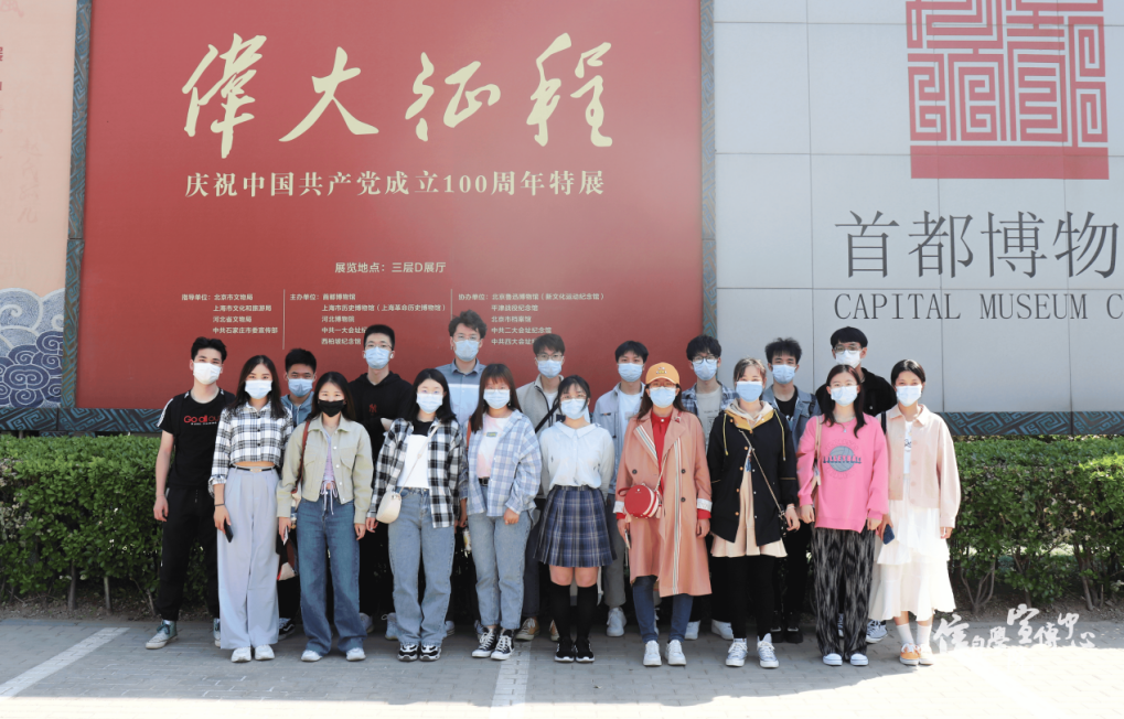 在本次培训中,同学们首先前往首都博物馆三层D展厅参观纪念建党百年的特展“伟大征程——庆祝中国共产党成立100周年特展”。该展览以中国共产党的诞生、土地革命、抗日战争、新中国成立四个历史时期为时间线索,用史料和文物还原重大历史事件,以点带面,概括、凝练地展示了中国共产党从建党到建立新中国的伟大历程,并运用数字和多媒体互动手段,以更为生动的形式传播展览信息。