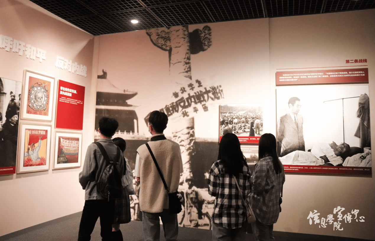 在讲解员的带领下,同学们依次参观了“东方破晓”、“开天辟地”、“星火燎原”、“中流砥柱”、“夺取胜利”等板块,在展览中重温了五四运动与马克思主义在我国的传播、中国共产党第一次全国代表大会的召开、党为复兴革命运动的艰苦斗争、抗日战争的胜利等重大事件。最后,当同学们看到开国大典的相关影视资料时,不禁感慨这一路革命的艰辛,对革命英雄们肃然起敬。