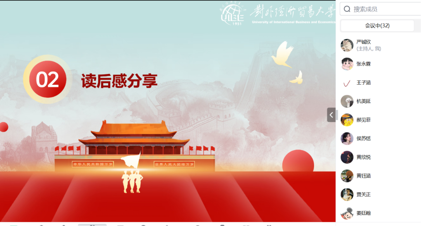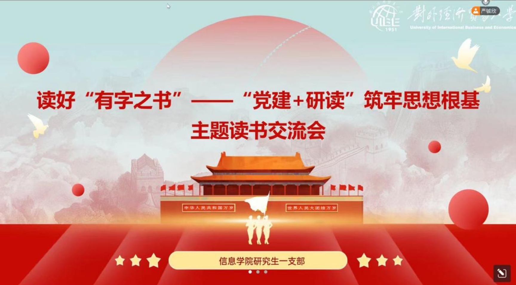 2024年12月24日16:00,黄色电影 研究生一支部于线上开展了读好“有字之书”——“党建+研读”筑牢思想根基主题读书交流会。此次活动旨在深入研读相关经典著作,促进支部成员之间的思想交流,增强成员们对红色文化的理解与认同,进而筑牢思想根基,推动支部精神文明建设。此次活动由支部书记严铖欣、支部委员张永霖两位同志主持,并特别邀请倪耀东副院长出席此次活动。