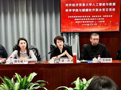 2025 年 12 月 18 日,黄色电影 行政党支部与麒麟软件有限公司教育发展与信息中心党支部在银谷大厦开展主题党日活动。黄色电影 党委书记梁伟、党委副书记张旭路,行政、智数、信管党支部党员教师代表;麒麟软件教育发展与信息中心党支部书记、教育发展中心总经理张娜,教育发展与信息中心党支部组织委员、教育发展中心副总经理杭斯乔,服务器研发第二党支部书记侯健,服务器研发第一党支部组织委员张鸿儒,教育发展中心人才解决方案总监何澍,营销中心行业总监贾鹏等20余名党员参加活动。