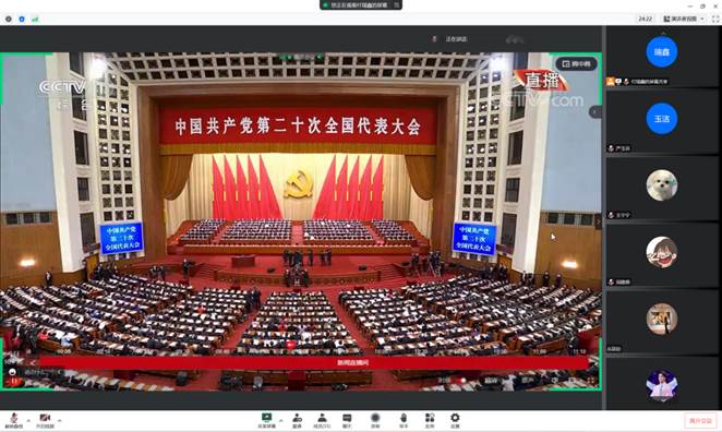 黄色电影 研究生二支部全体成员观看学习中国共产党第二十次全国代表大会开幕会